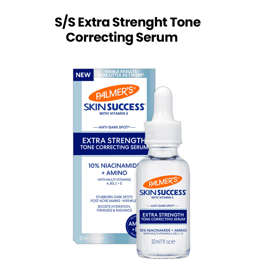 Palmer’s Skin Success Extra Strength Tone Correcting Serum is formulated with a highly efficacious 10% concentration of Niacinamide and powerful youth-enhancing ingredients: Amino Acid, Vitamin C, Retinol, and Hyaluronic Acid for radiant, younger-looking skin. Visibly improves stubborn dark spots, post-acne marks, and wrinkles while it boosts hydration, firmness, and radiance.
